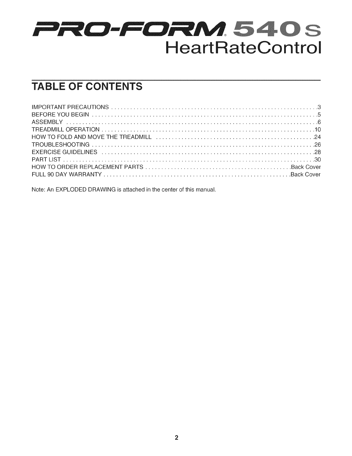 Note: An EXPLODED DRAWING is attached in the center of this manual.