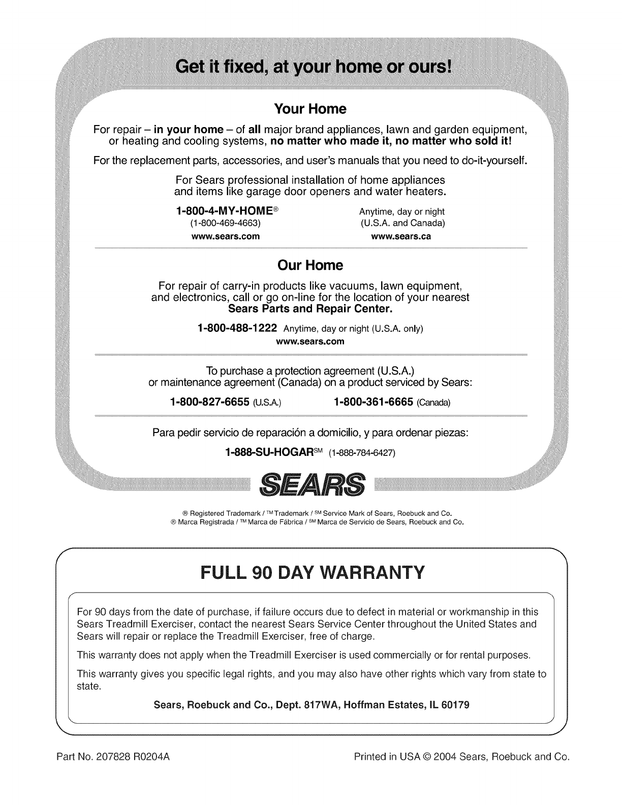 Part No. 207828 R0204A Printed in USA © 2004 Sears, Roebuck and Co.