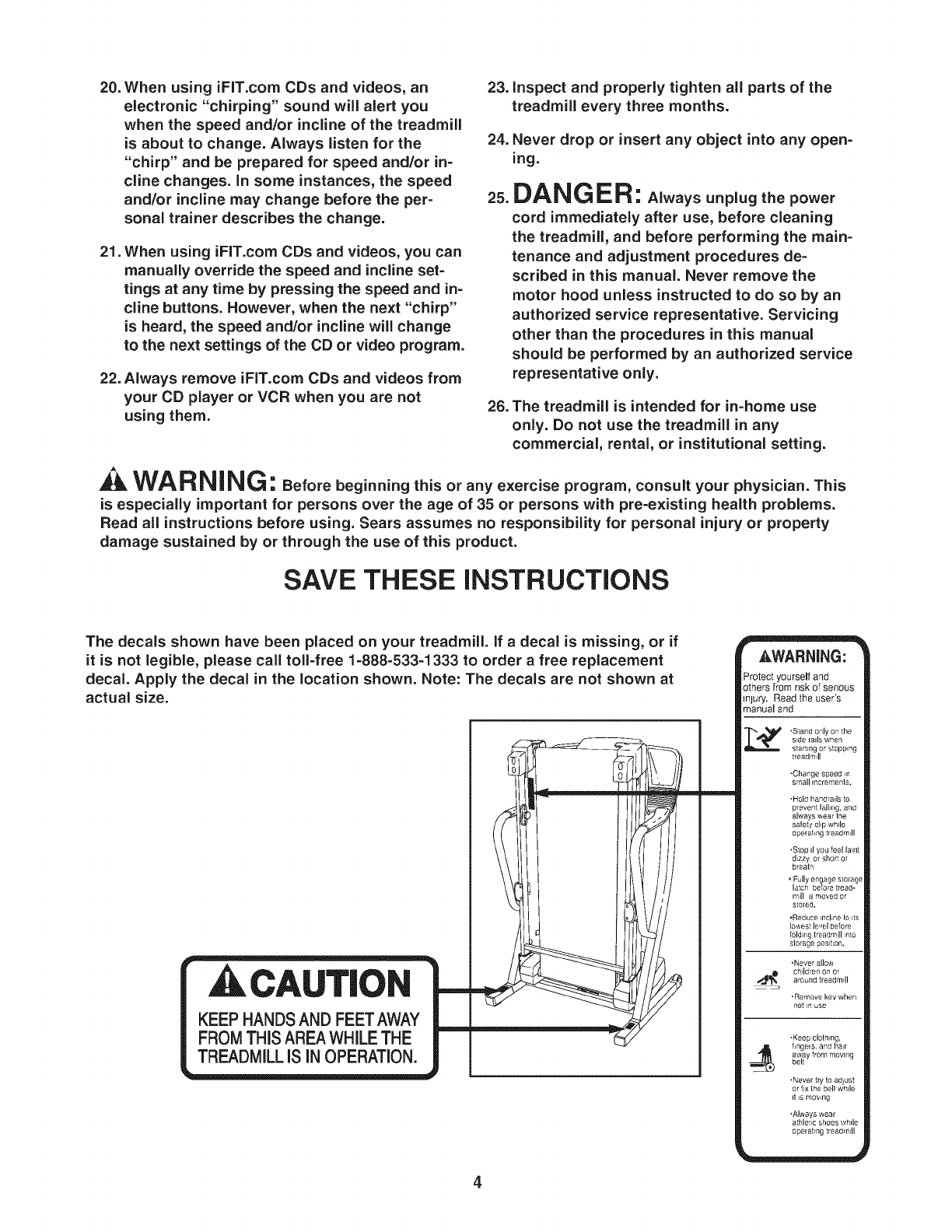 away from the treadmill at all times.