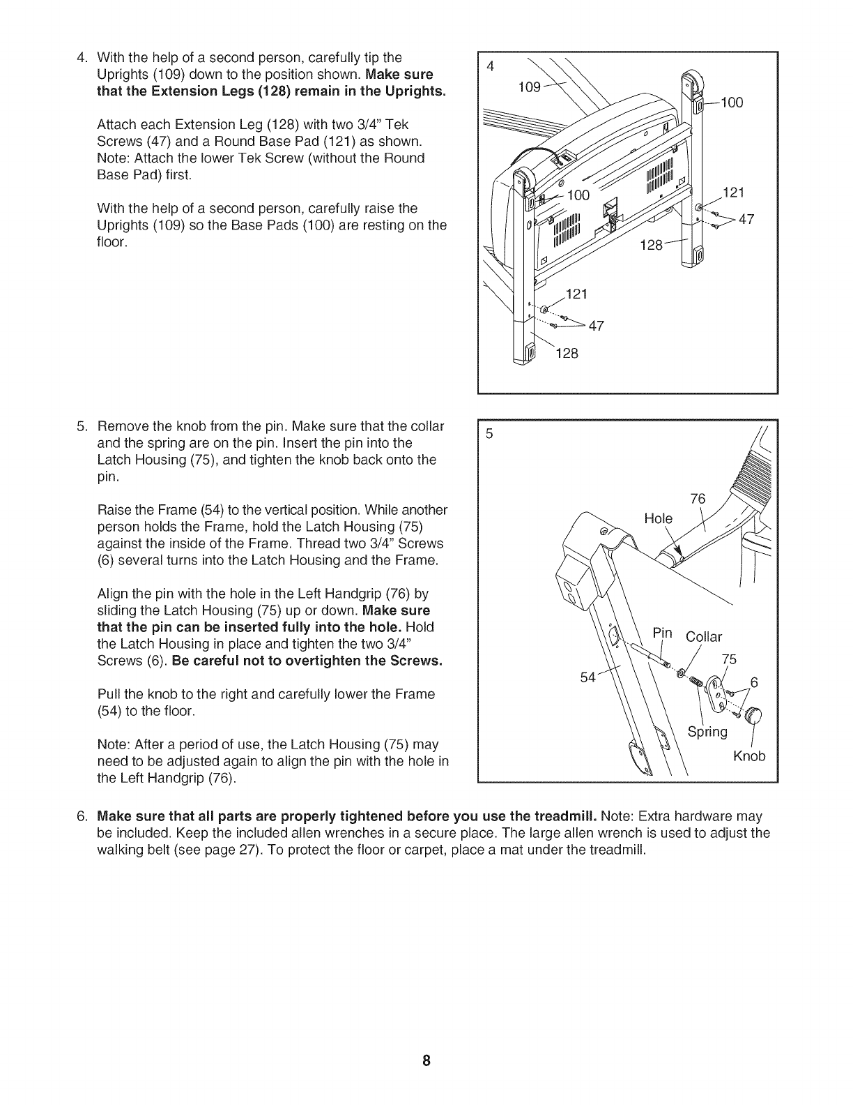 7. The treadmill should not be used by persons