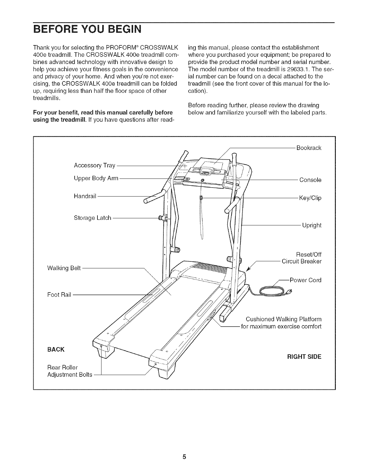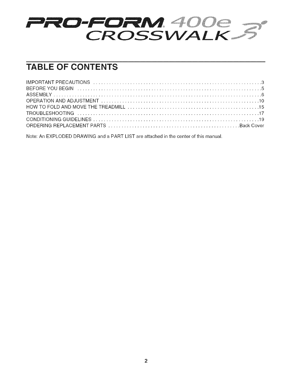 the NAME of the product (PROFORM CROSSWALK 400 e treadmill)