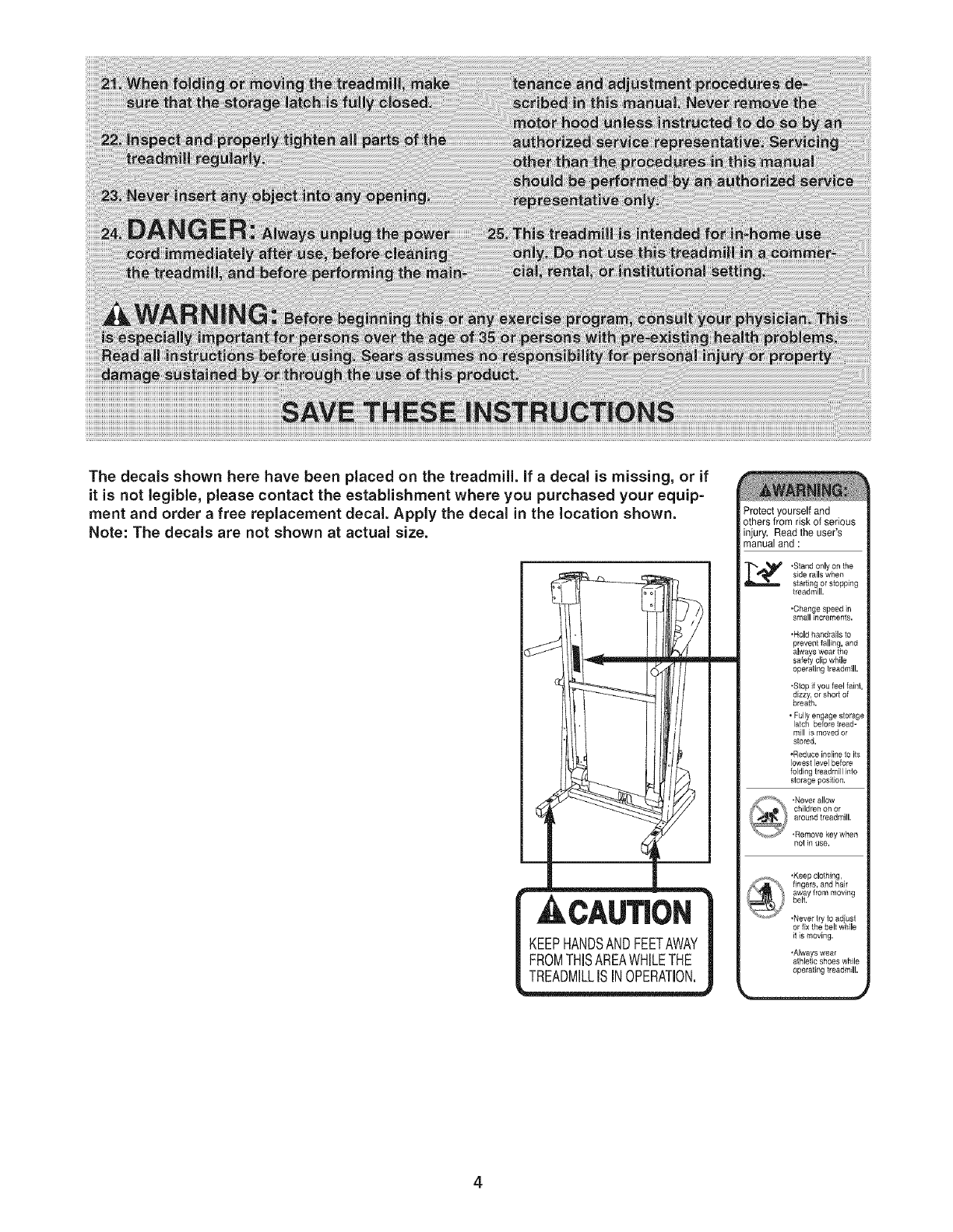 The decals shown here have been placed on the treadmill, if adecal is missing, or if