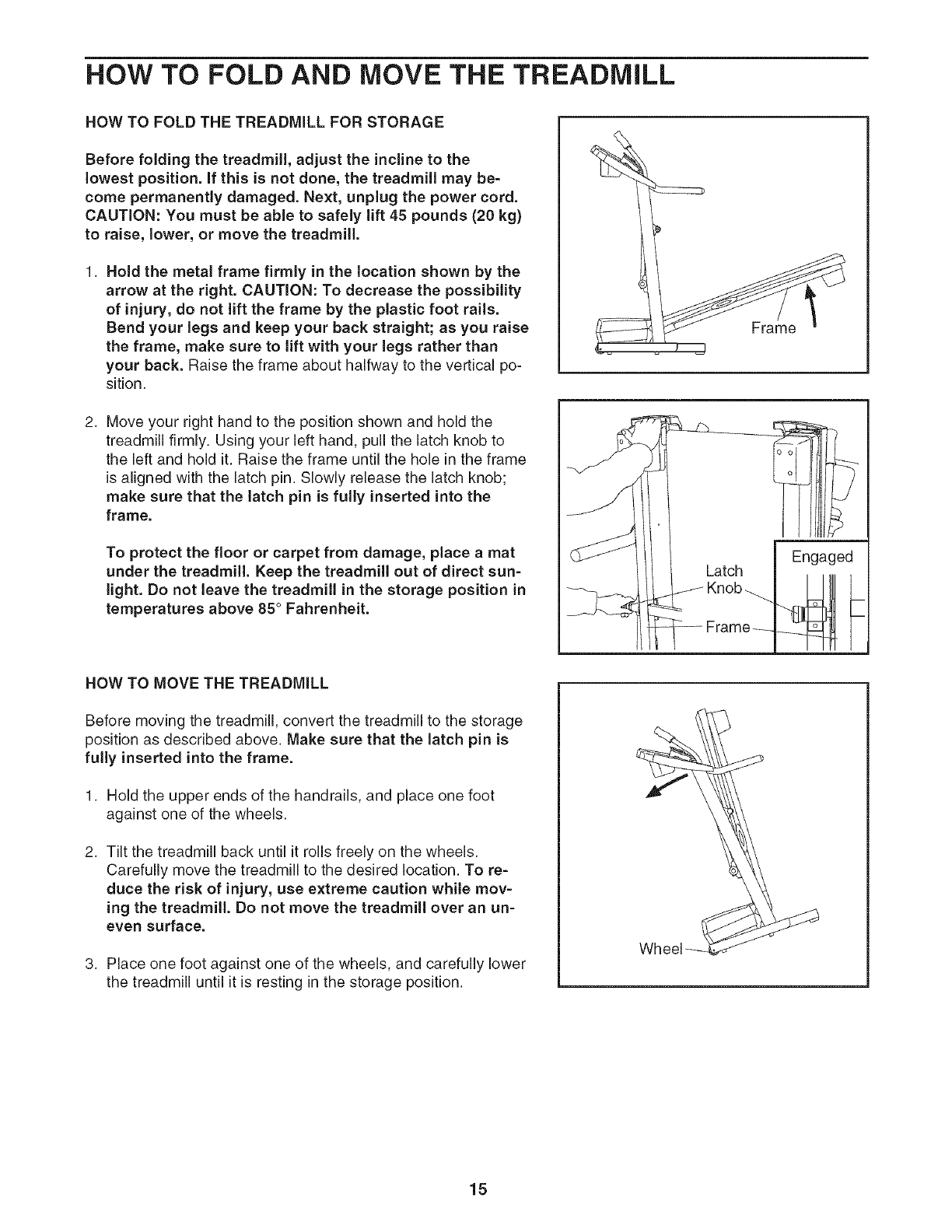 HOW TO FOLD AND MOVE THE TREADMILL .................................................. 15