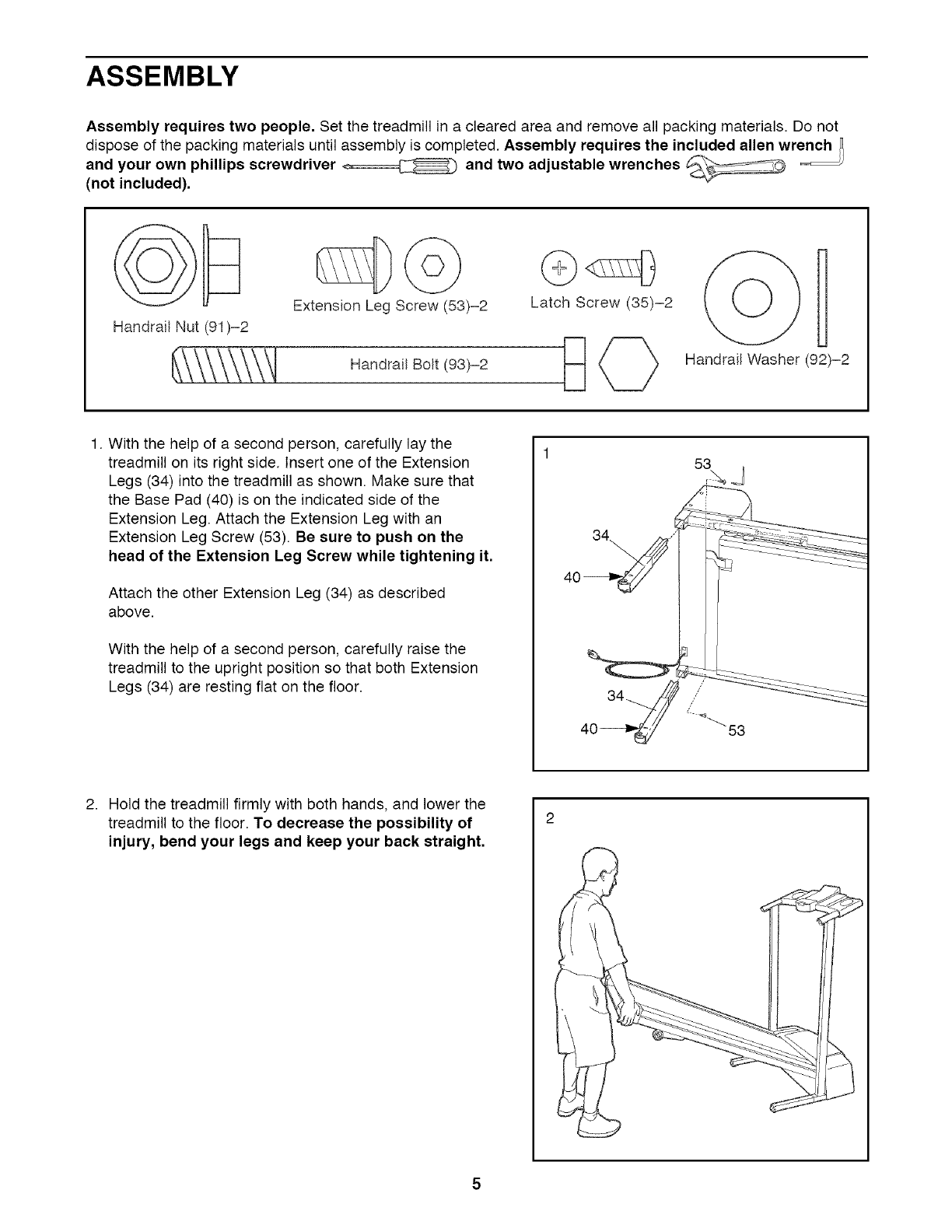 Never move the walking belt while the power ASSEMBLY on pages 5 and 6, and HOW TO