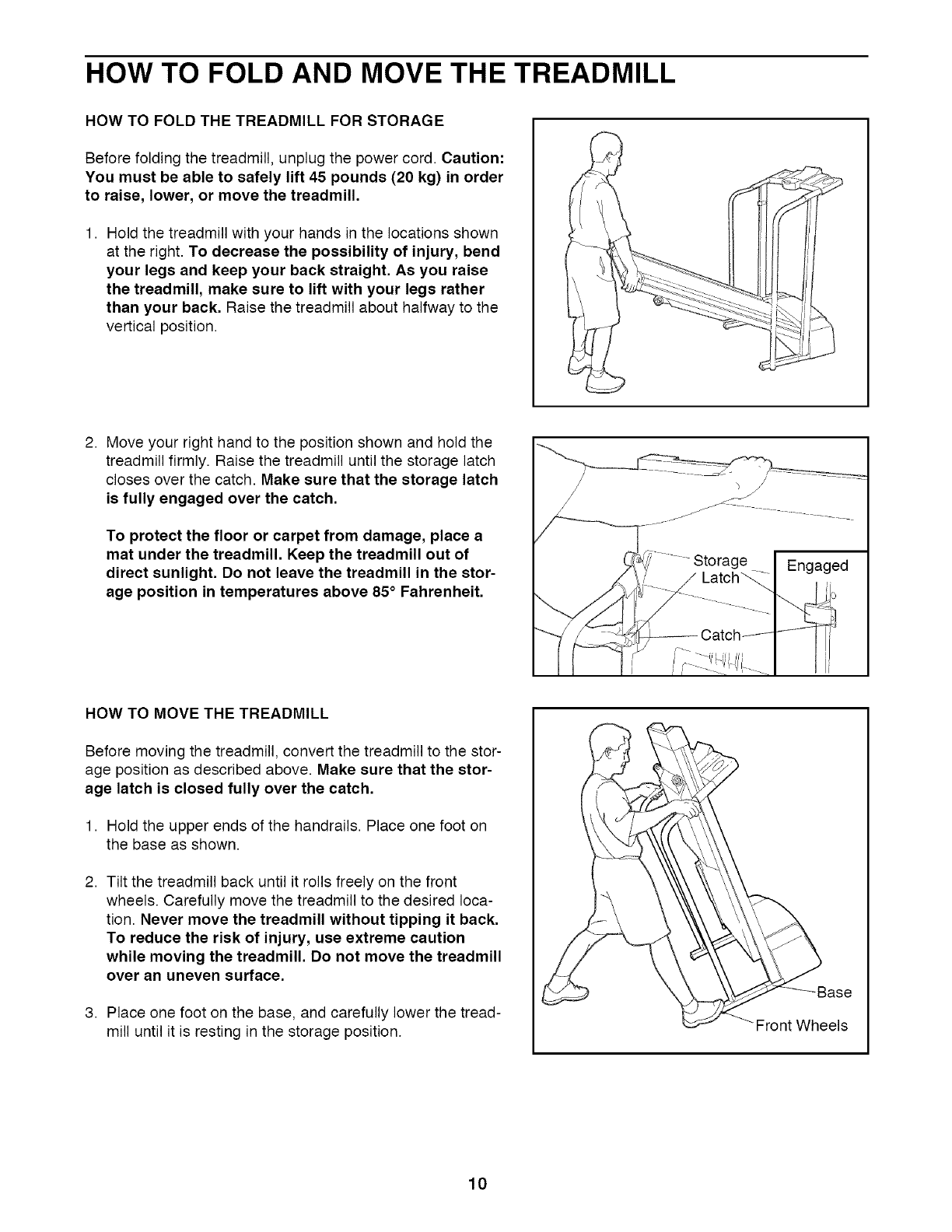 HOW TO FOLD AND MOVE THE TREADMILL .................................................. 10