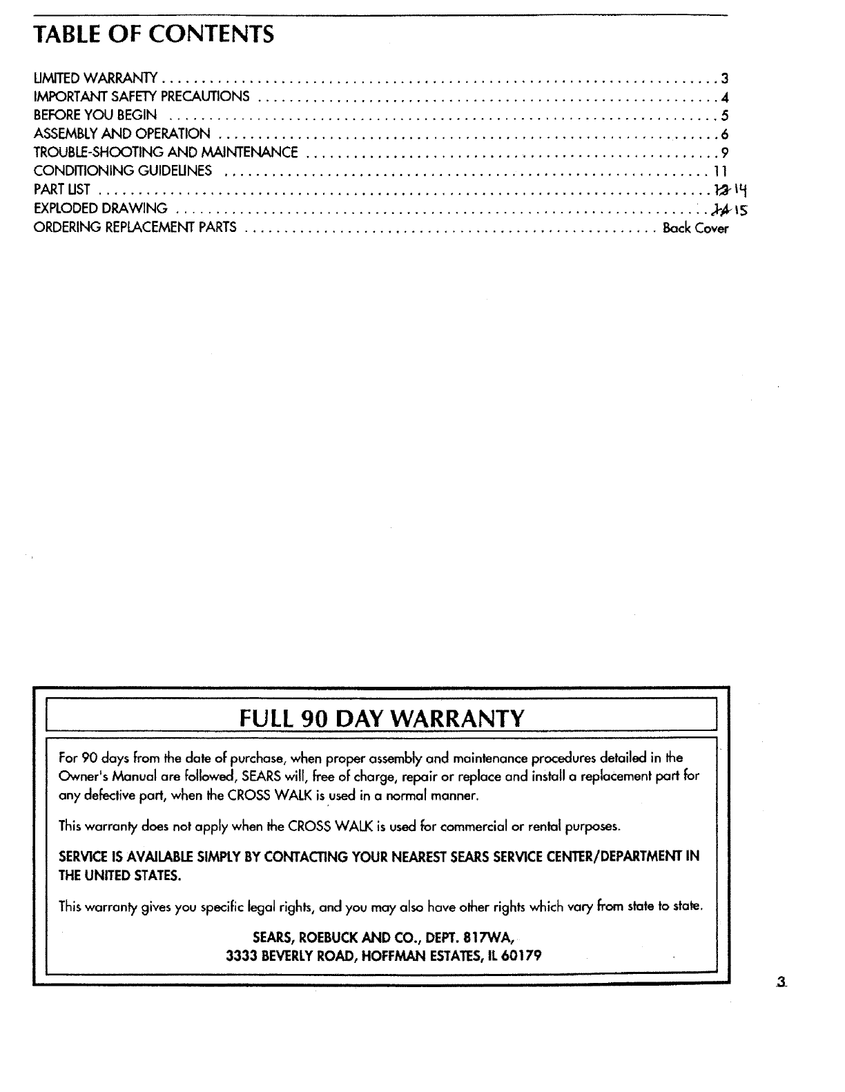 usingthe CROSSWALK. SEARSassumes no responsibility for personal injury or property damage sustained by or