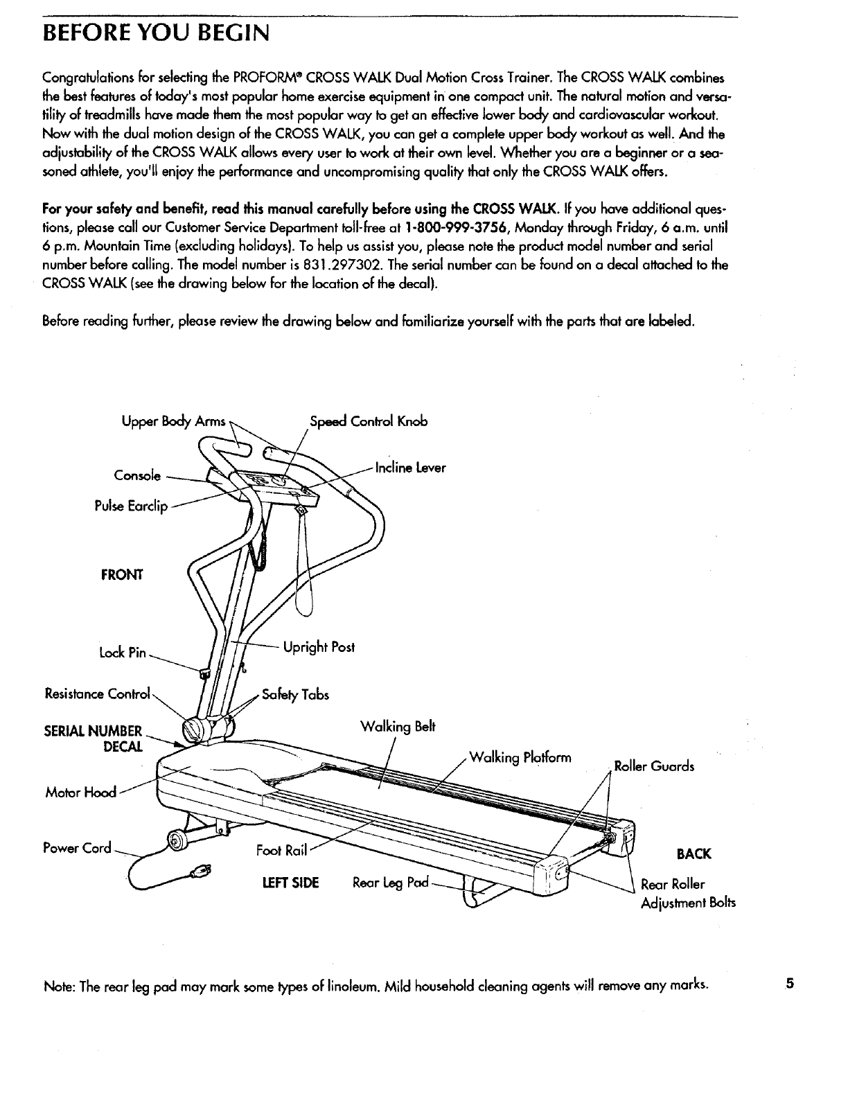 Proform 831297302 User Manual CROSSWALK PLUS TREADMILL Manuals And Guides L0801748