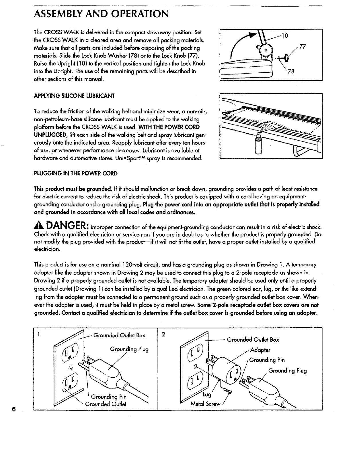 WALK. Always wear athletic shoes;never use the CROSS WALKwith bare feet, wearing only stockingsor in