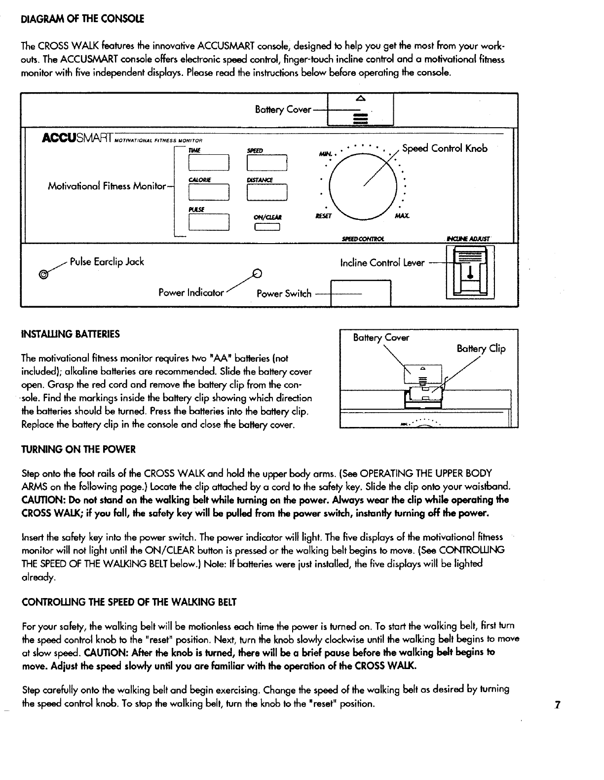 the walking belt is moving. Always turn the power off when the CROSSWALK is not in use.