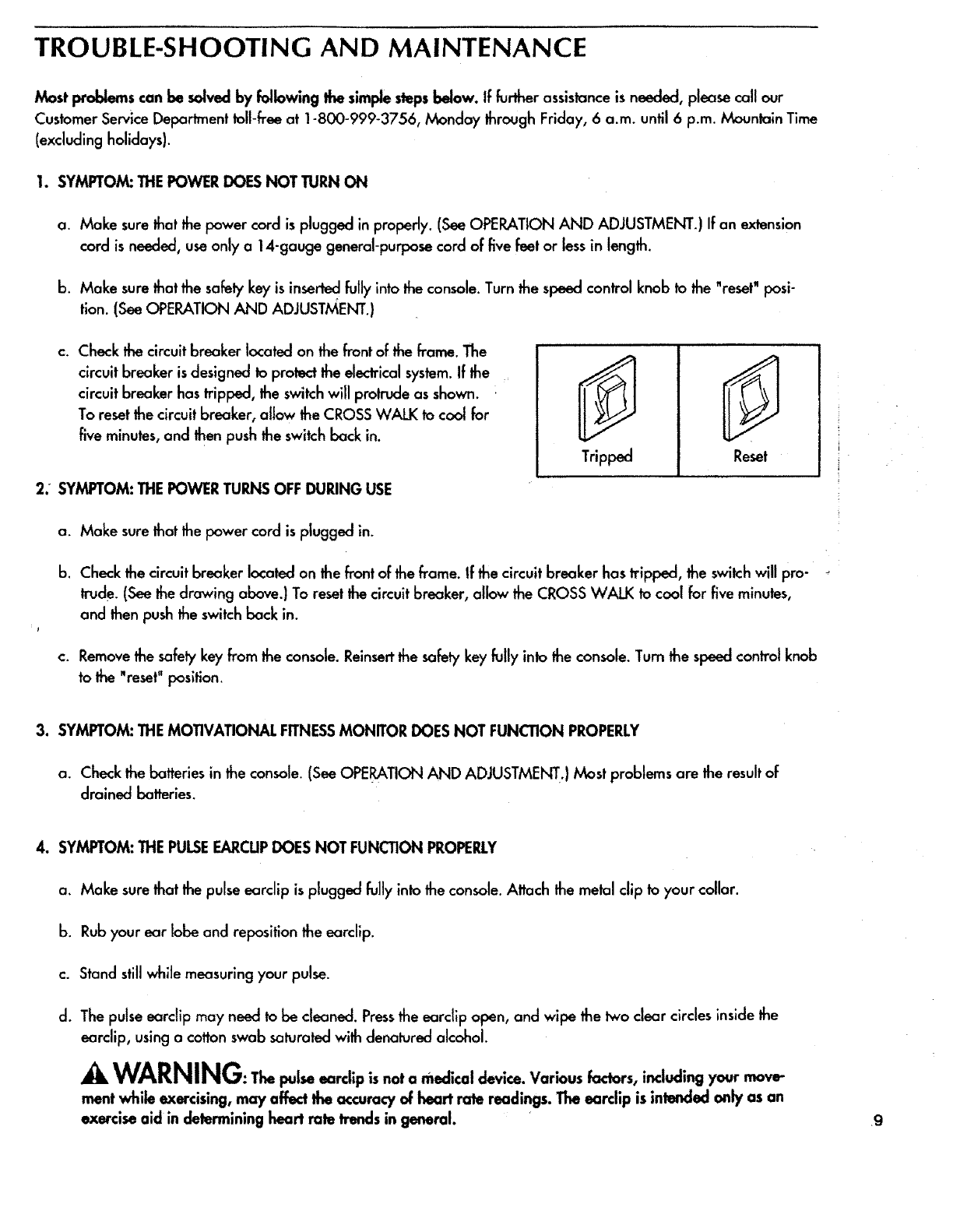 Thiswarranty does not apply when the CROSS WALK is used for commercial or rentaJpurposes.