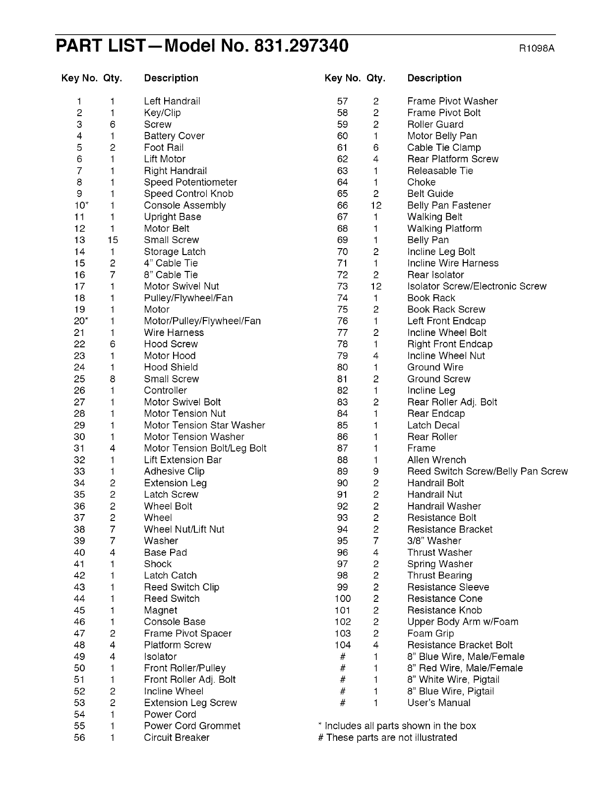 EXPLODED DRAWING--Model No. 831.297340 mO98A