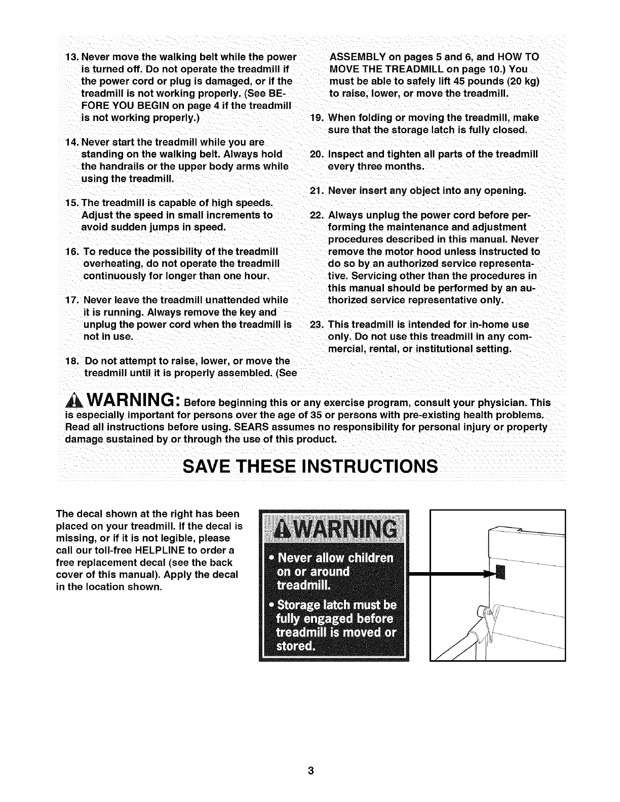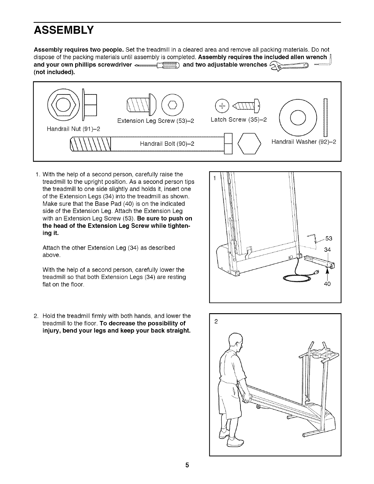 13. Never move the walking belt while the power ASSEMBLY on pages 5 and 6, and HOW TO