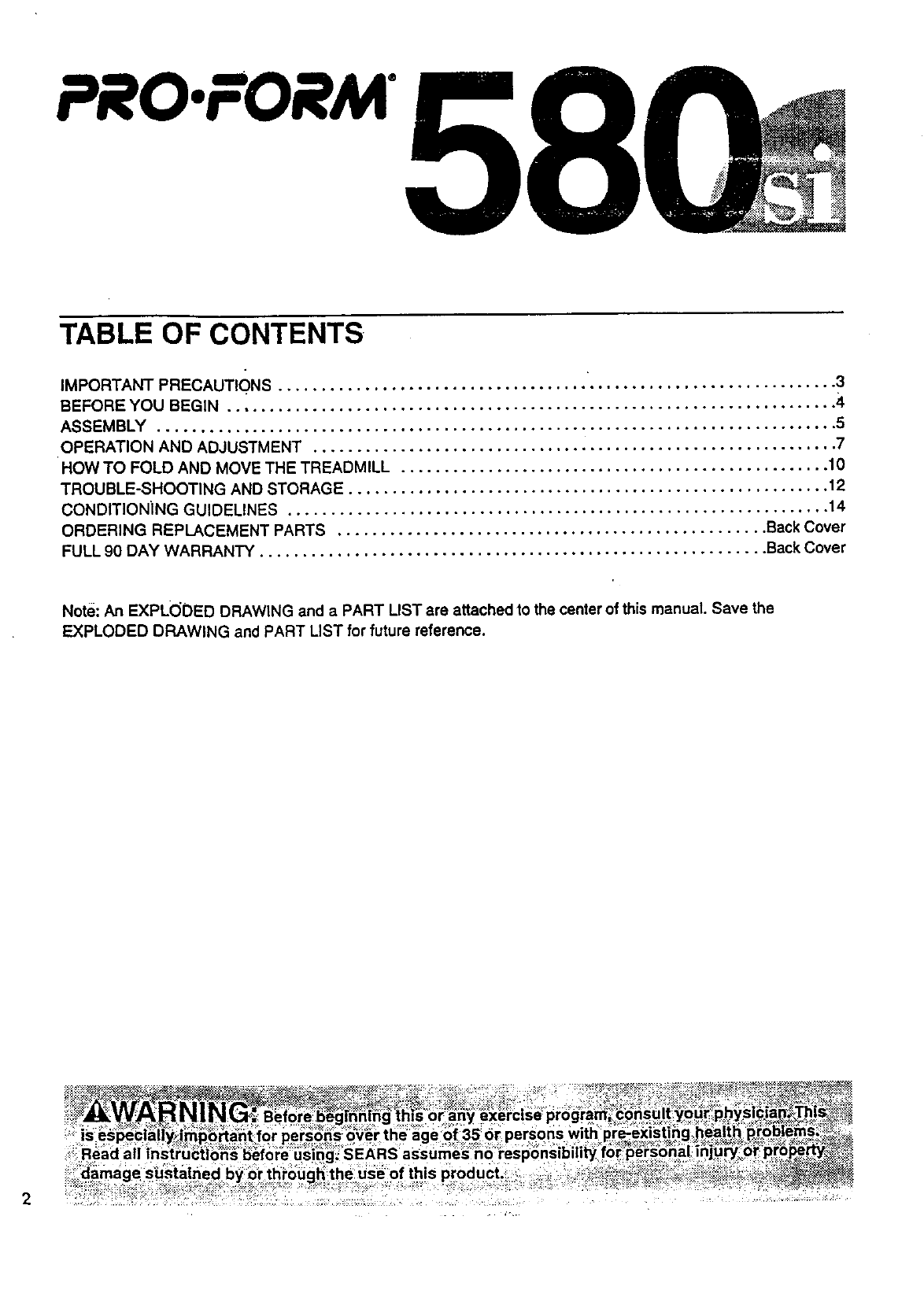 Thank you for selecting the unique PROFORM ° 580si