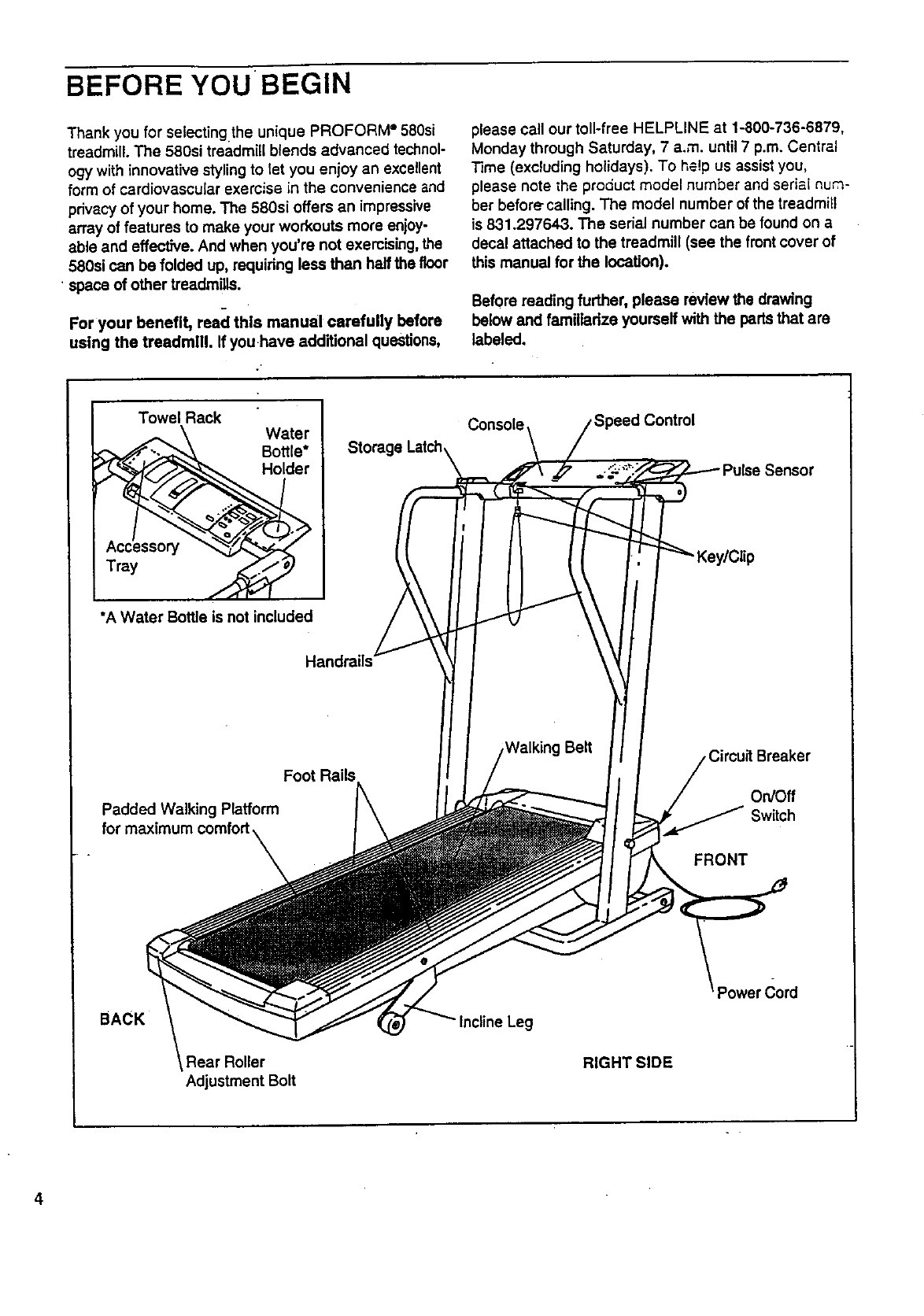 The model number and serial number of your PROFORM ®580si