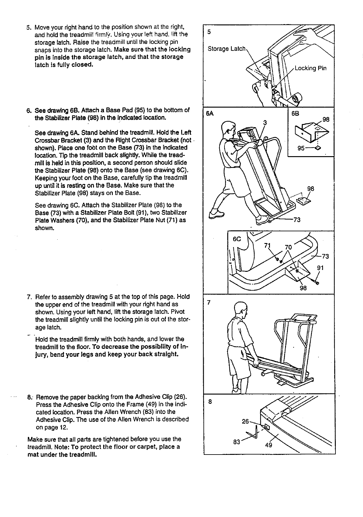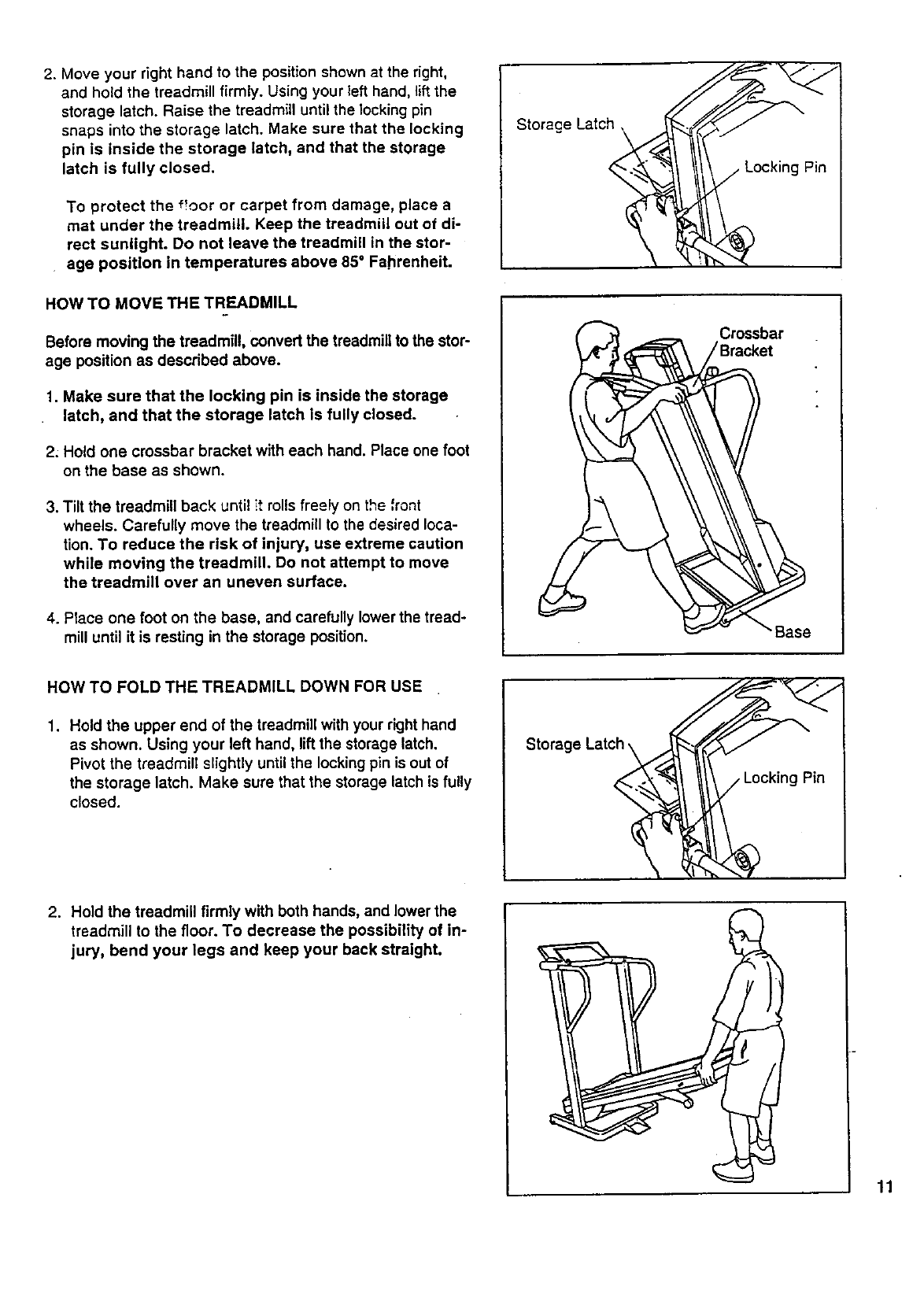 4. Next, the treadmill should be raised to the storage posi-