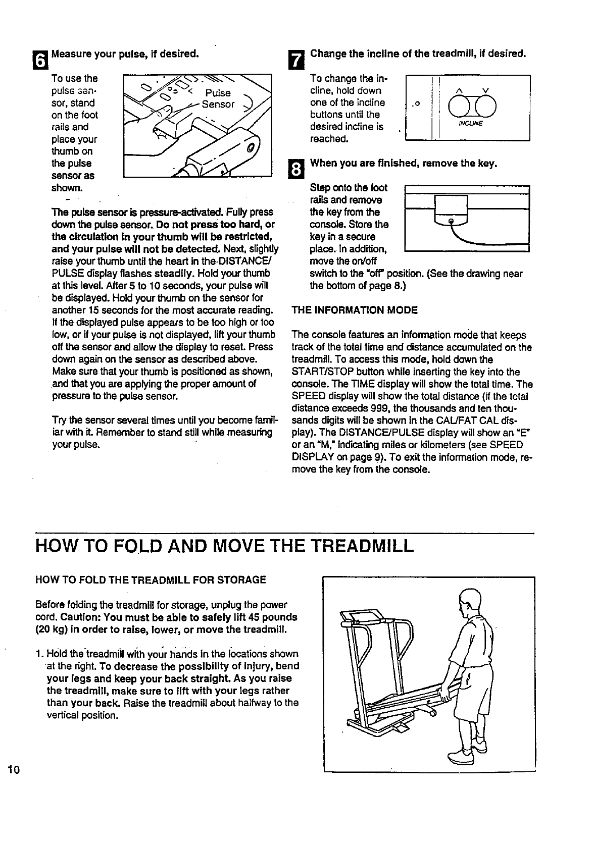 HOW TO FOLD AND MOVE THE TREADMILL .................................................. 10