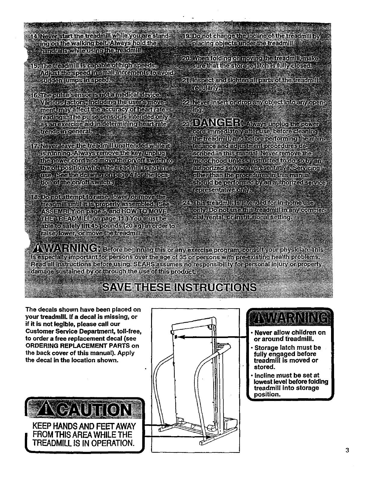 treadmill are listed on adecal attached to the frame. See the front
