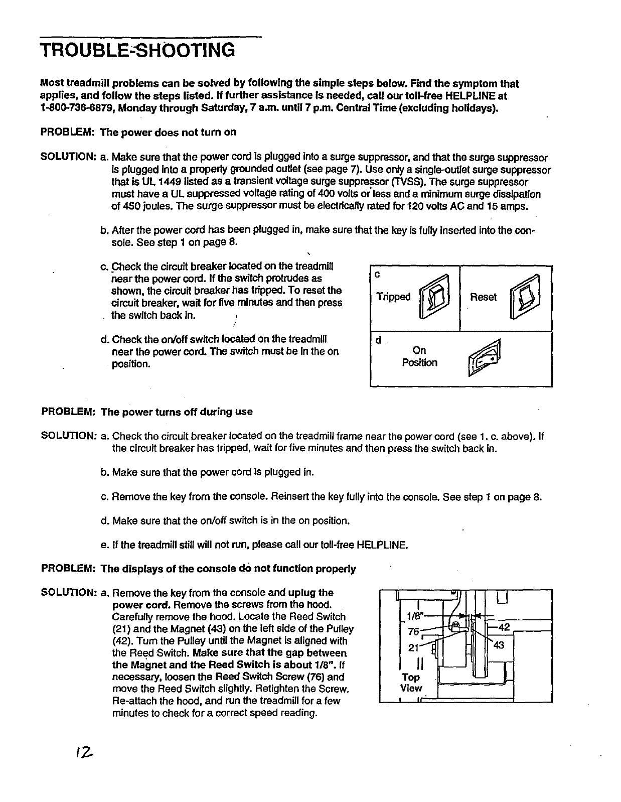 SEARS TREADMILL EXERCISER, contact the nearest SEARS Service Center throughout the United
