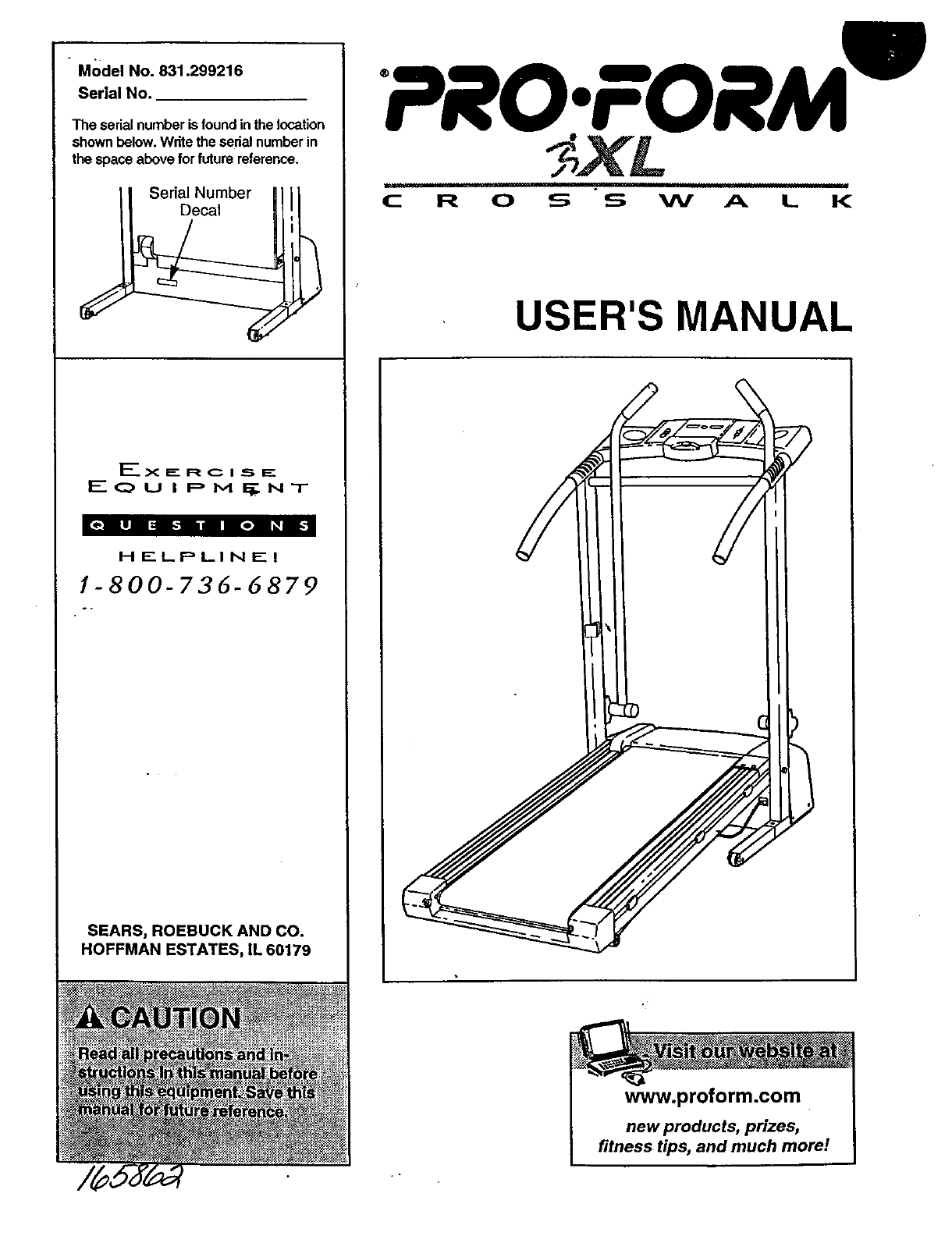 User Manual: Proform 831299216 831299216 PROFORM CROSSWALK XL - Manuals and Guides View the owners manual for your PROFORM CROSSWALK XL #831299216. Home:Fitness Equipment Parts:Proform Parts:Proform CROSSWALK XL Manual