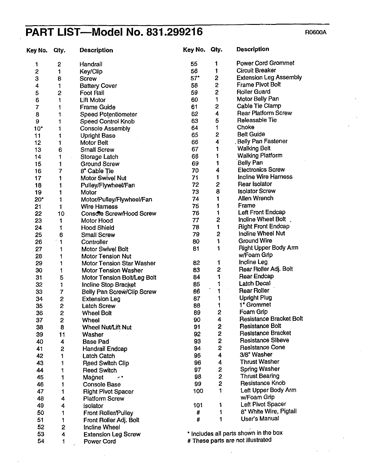 Note: An EXPLODED DRAWING and a PART LIST are attached if] the center of this manual. Save the