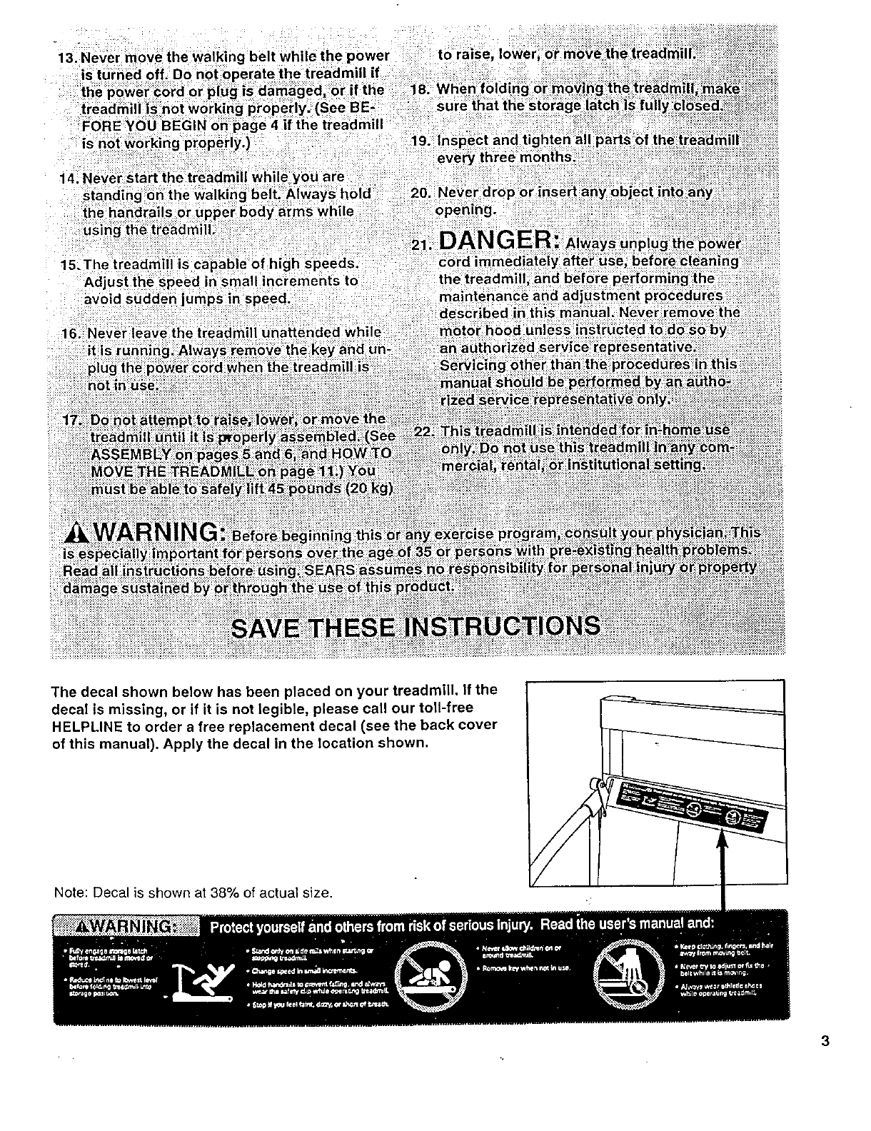 13. Never move the walking belt while the power to raise, lower; of move the treadmill.