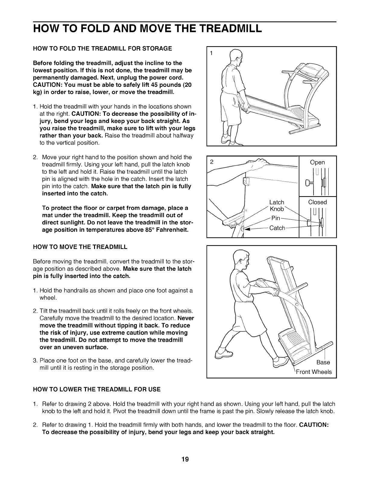 or more amps. No other appliance should be AND MOVE THE TREADMILL on page 19.) You