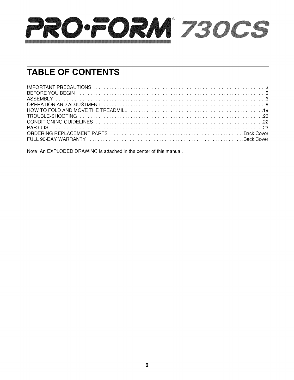 • The NAME OF THE PRODUCT (PROFORM ®730CS treadmill)