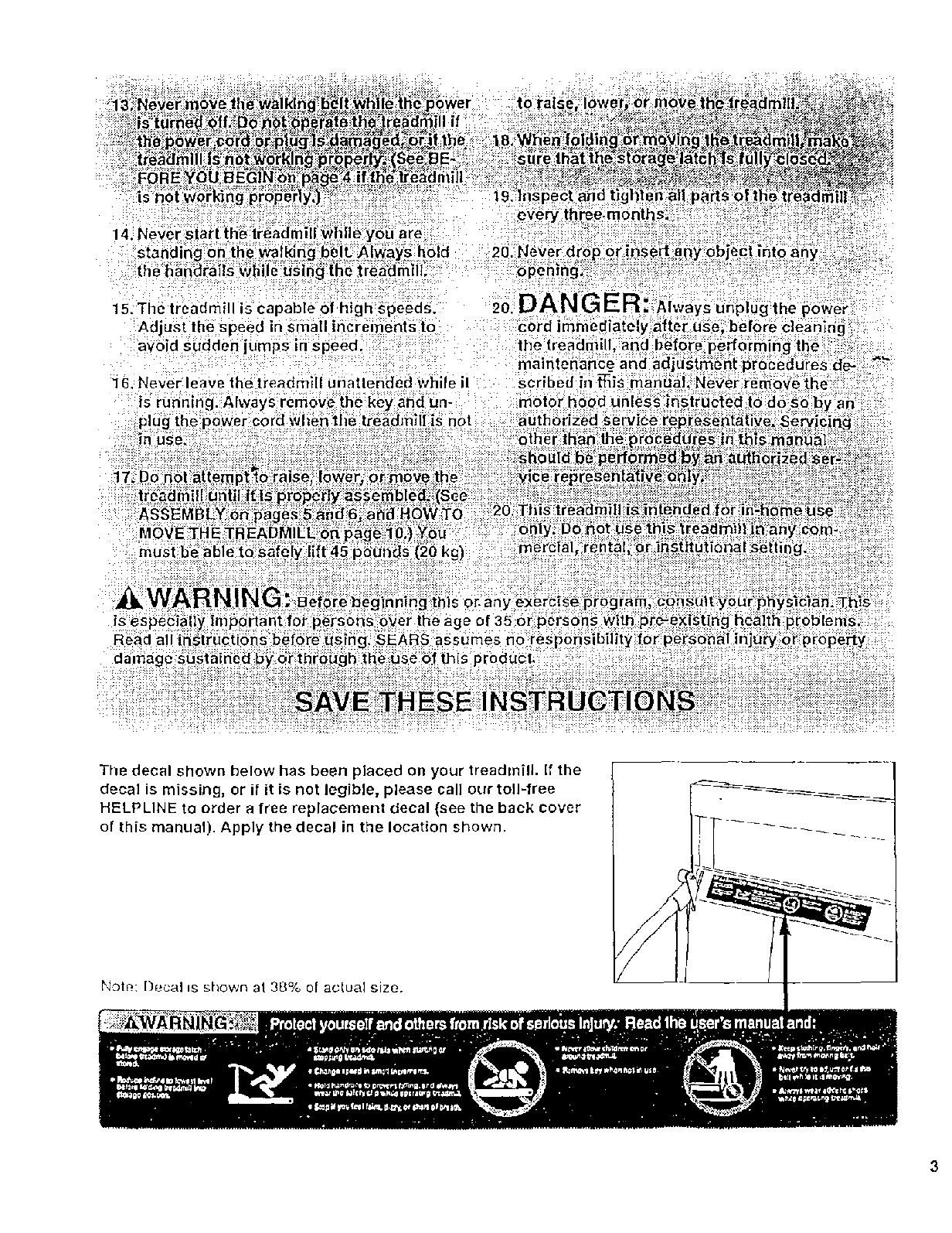 15. The treadmdl is capable ot h,gh speeds. 20.DAN G ER. .nplugthe