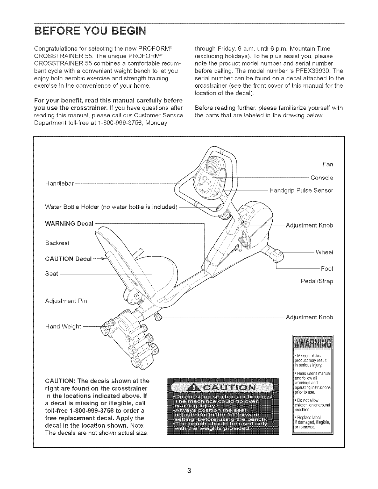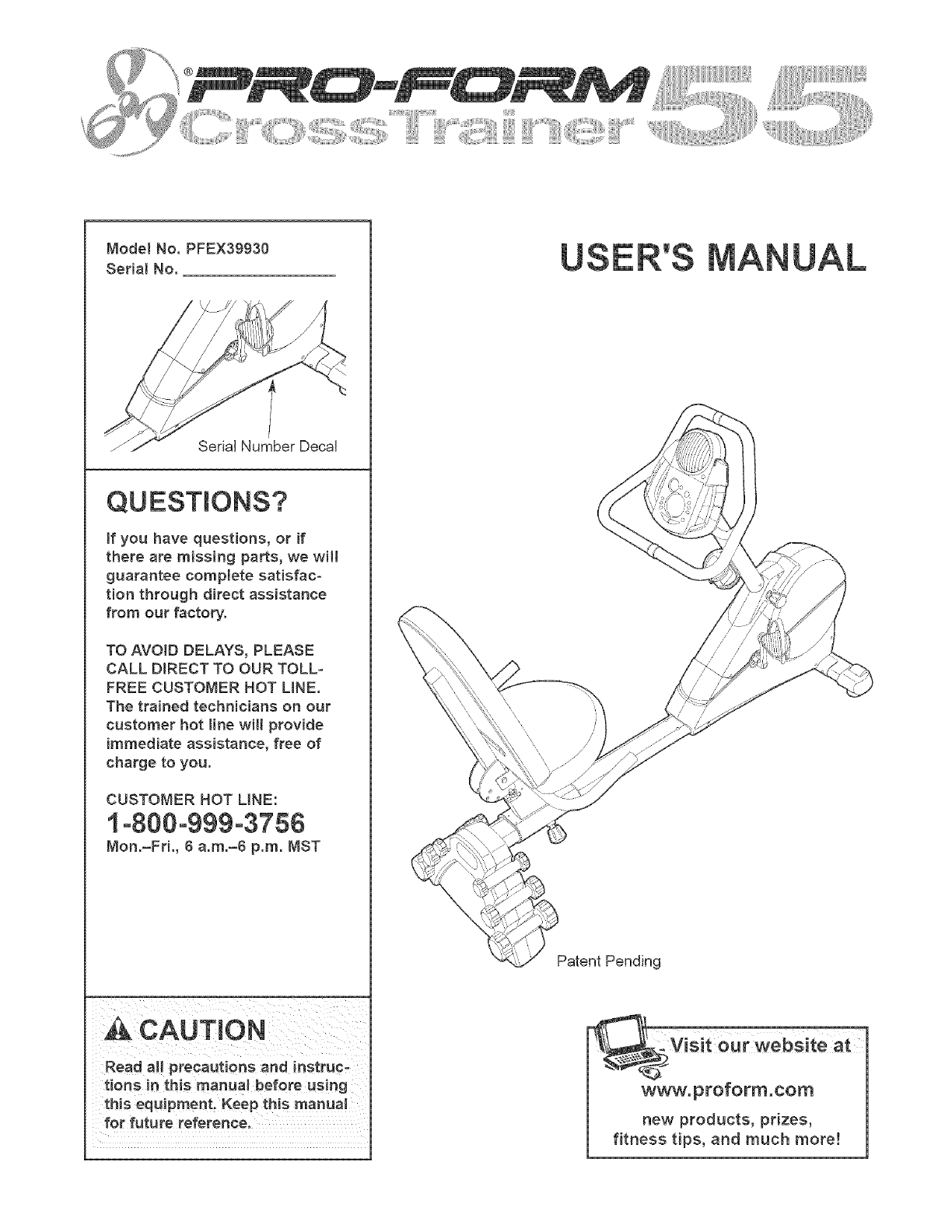 •The NAME of the product (PROFORM _'CROSSTRAINER 55)