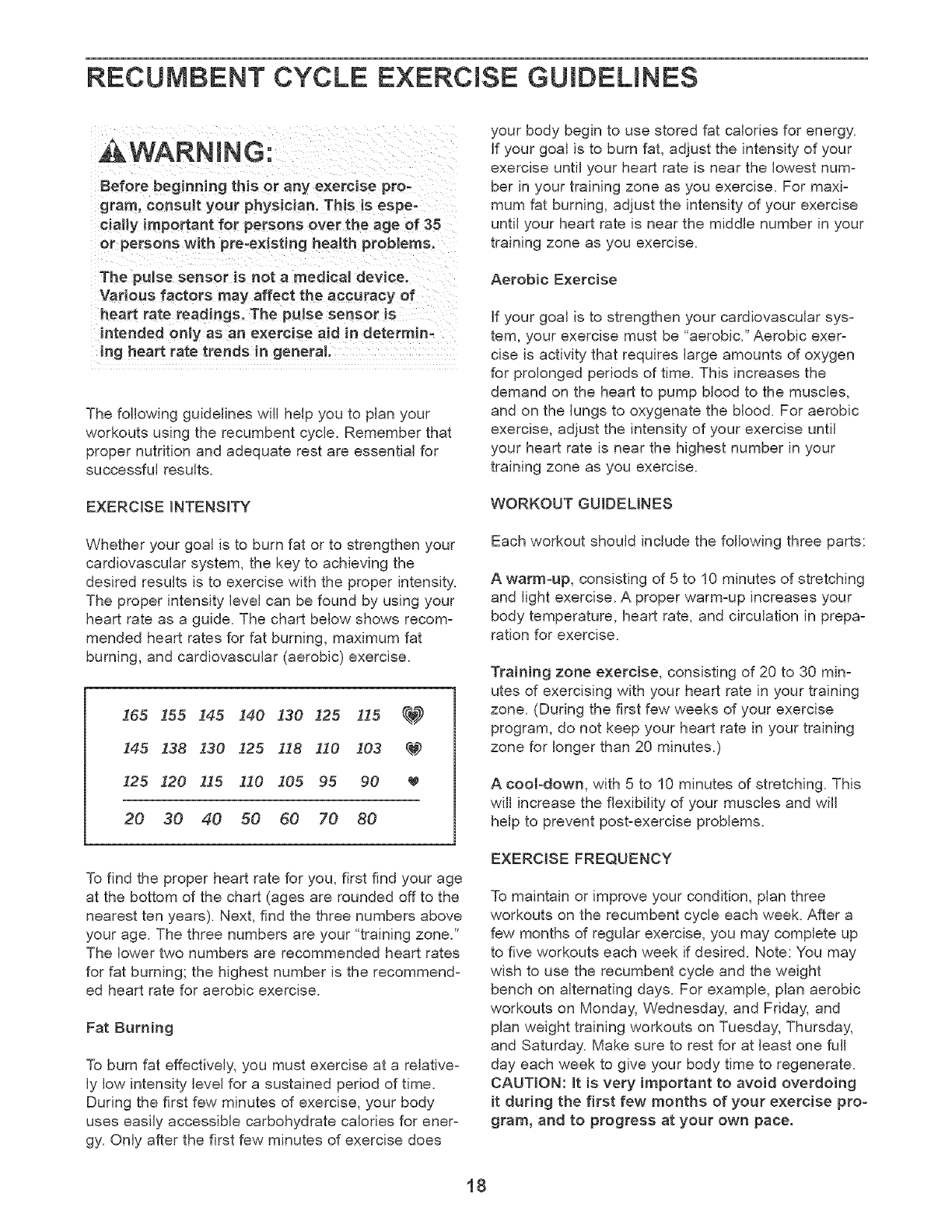 RECUMBENT CYCLE EXERCISE GUIDELINES .............................................. 18