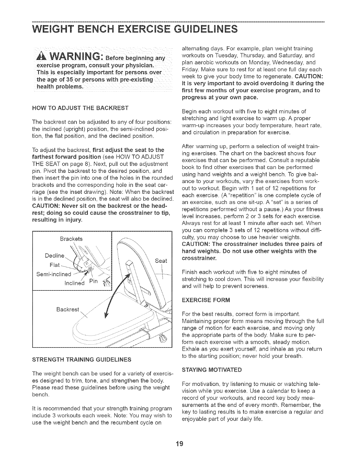 2. it is the responsibility of the owner to ensure 9. Before using the weight bench, always