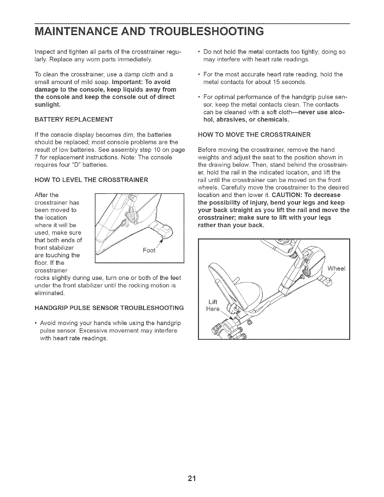 MAINTENANCE AND TROUBLESHOOTING ................................................. 21