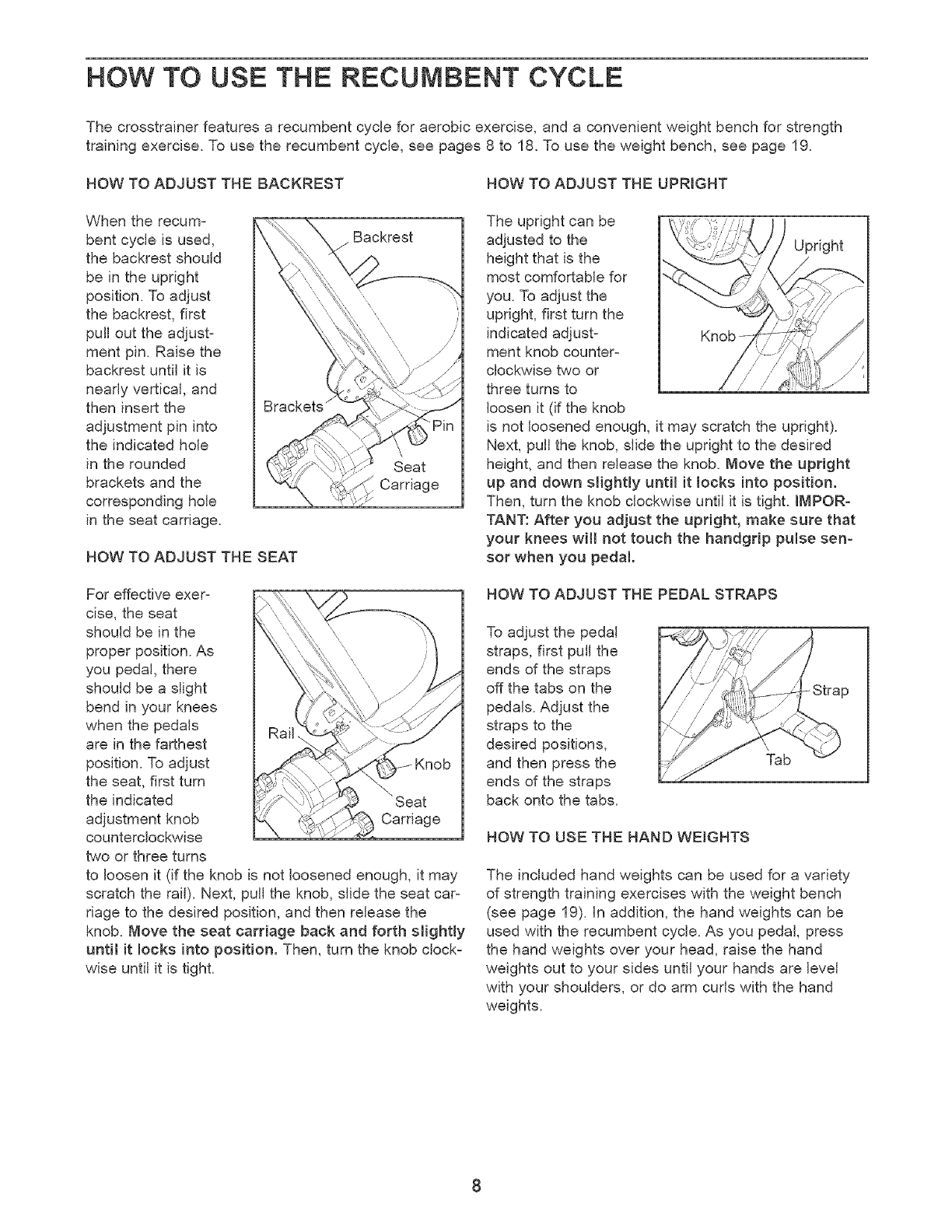 HOW TO USE THE RECUMBENT CYCLE .................................................... 8