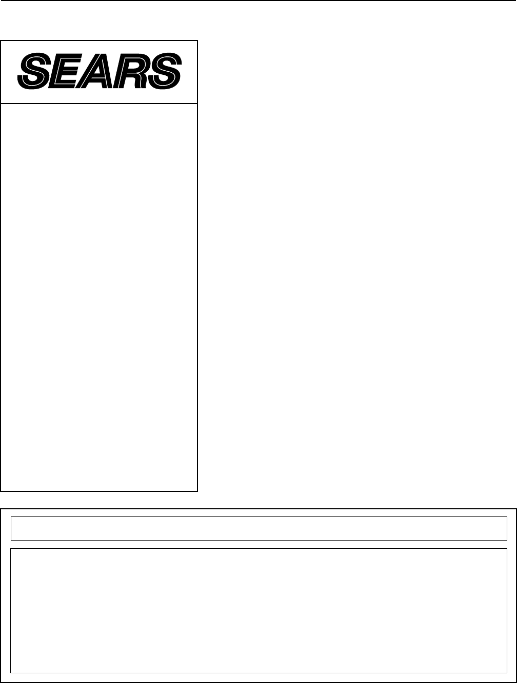 Part No. 151678 H04109AC R1298A Printed in China © 1998 Sears, Roebuck and Co.
