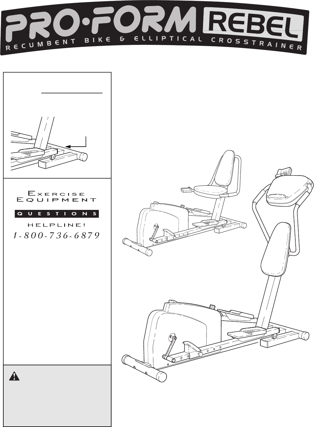 tions before using the PROFORM¨REBEL Recumbent Cycle and Elliptical Crosstrainer.