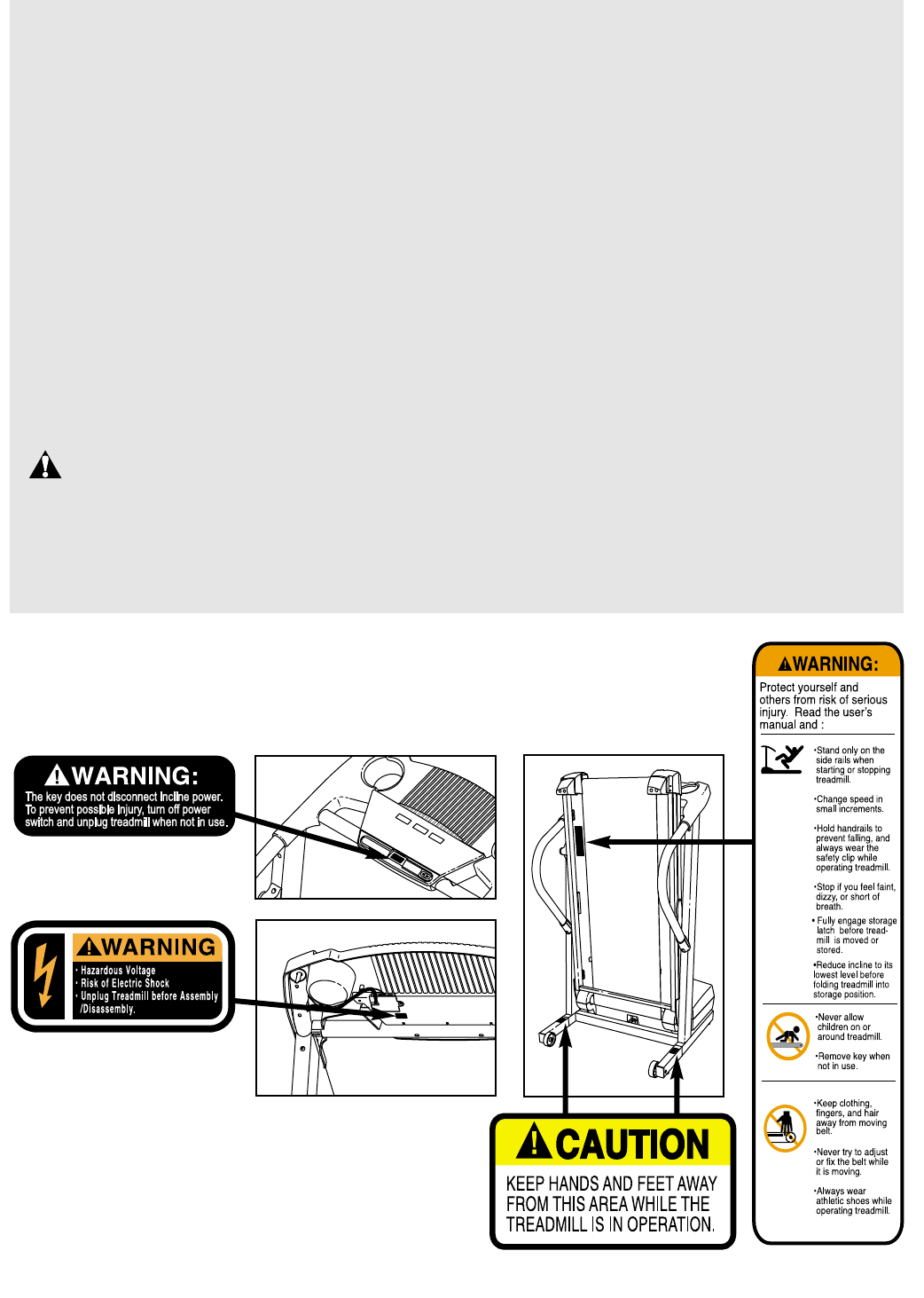 away from the treadmill at all times.