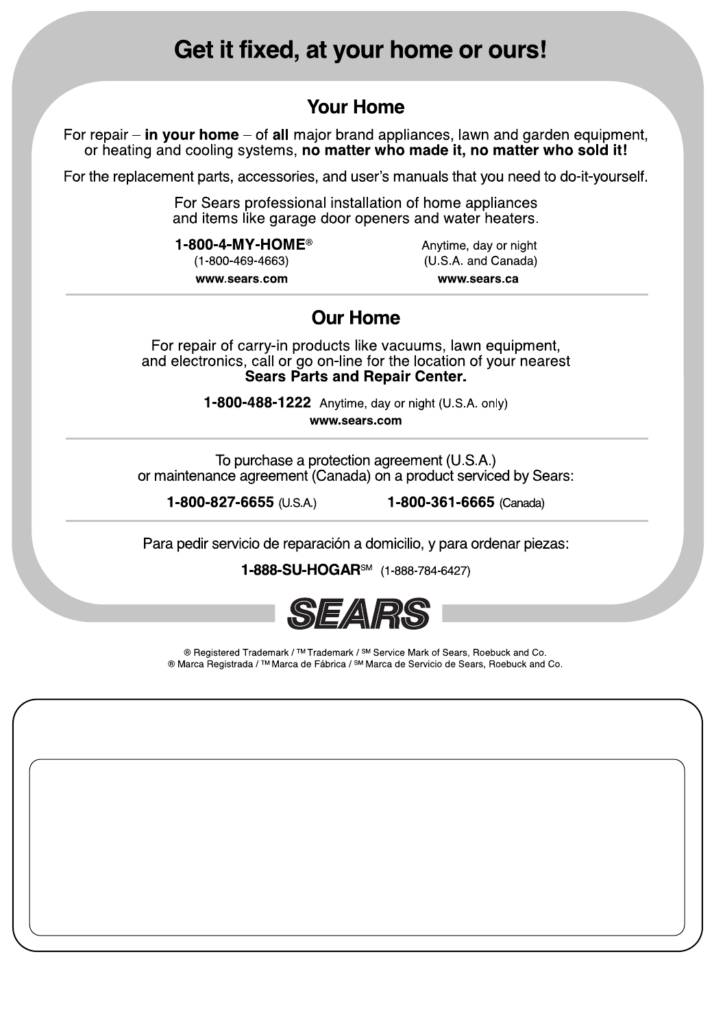 Part No. 196853 R0603A Printed in USA © 2003 Sears, Roebuck and Co.