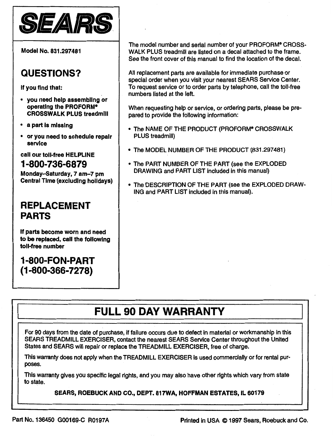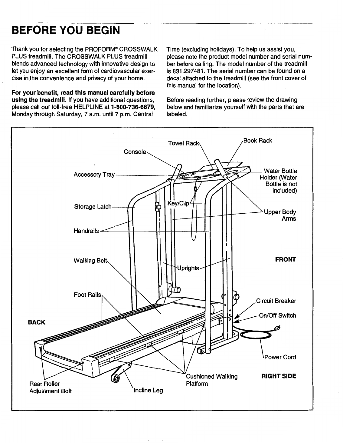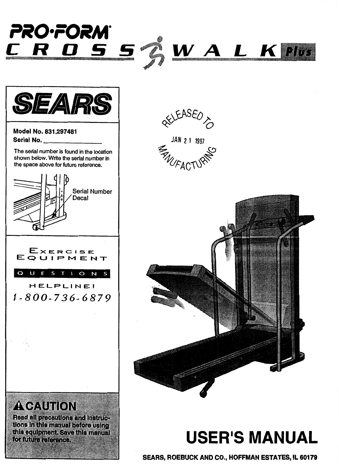 Proform 297481 Crosswalk Si Treadmill Users Manual