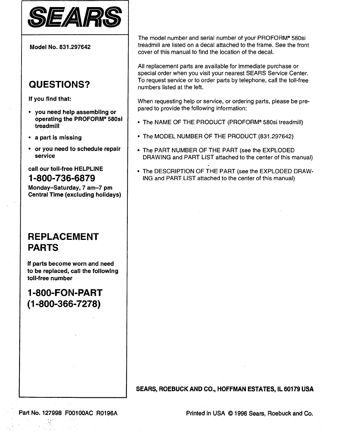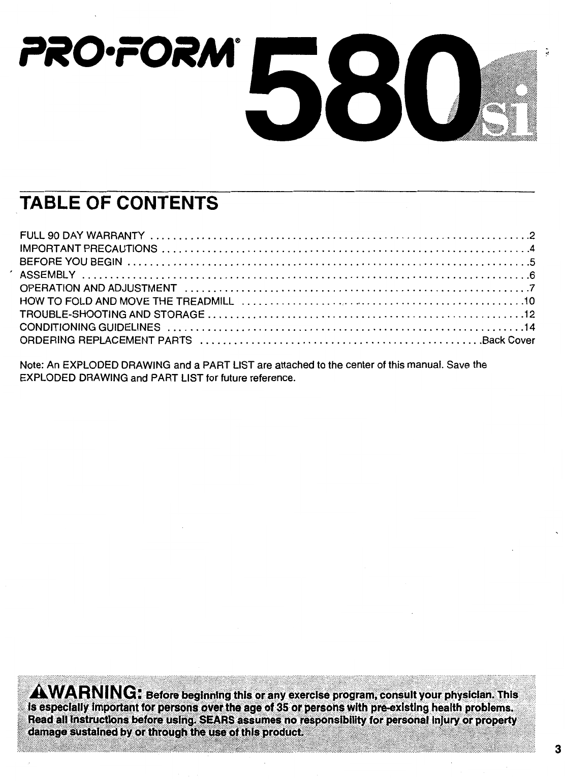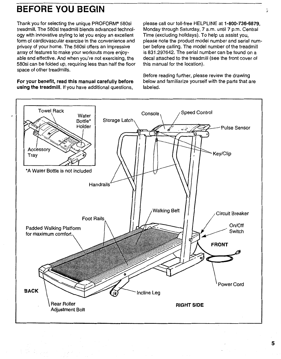Proform 297642 580 Si Treadmill Users Manual