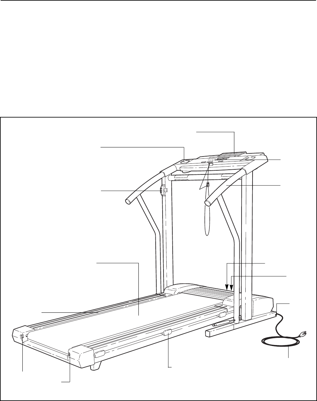 treadmill are listed on a decal attached to the frame. See the front