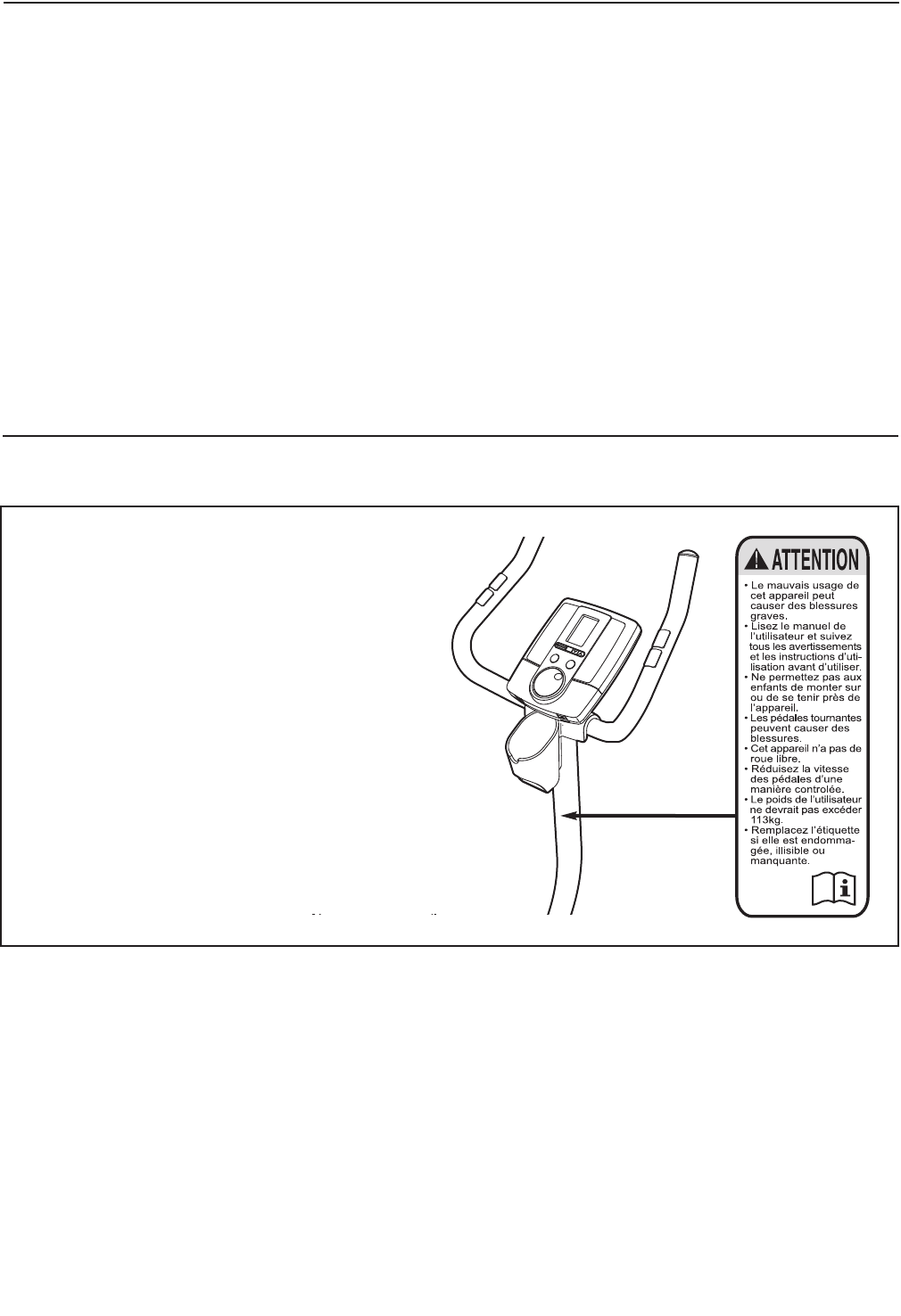 ments se trouvant sur le vélo dʼexercice, avant dʼutiliser votre vélo dʼexercice. ICON ne peut être