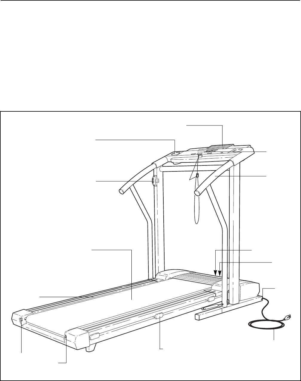 treadmill are listed on a decal attached to the frame. See the front