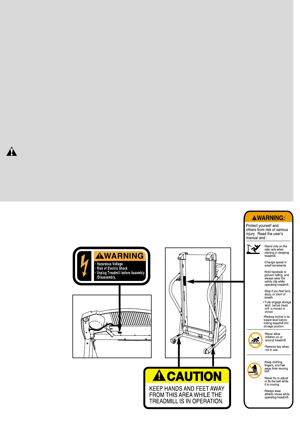 away from the treadmill at all times.