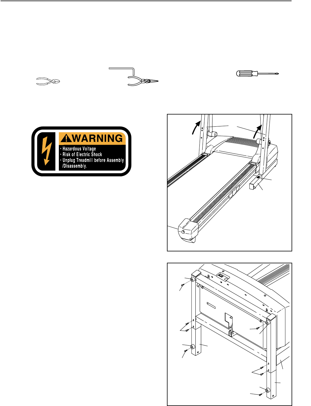 shoes. Never use the treadmill with bare feet,