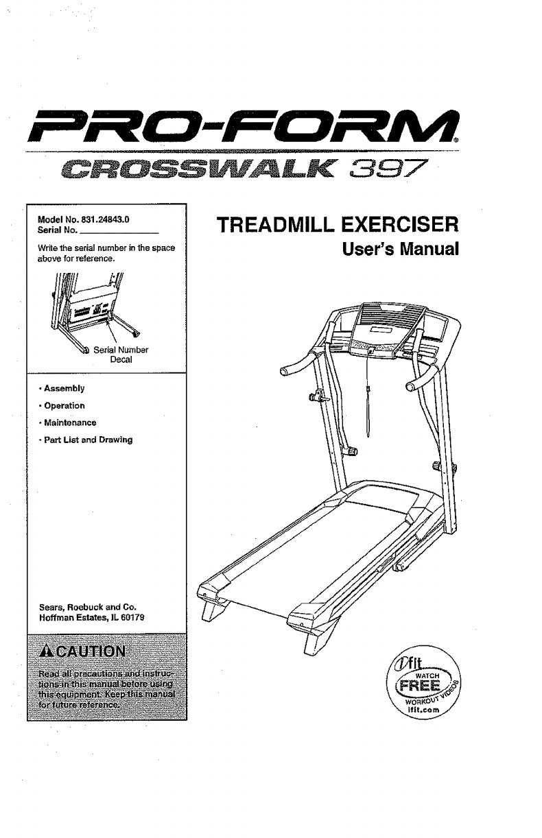 Proform Crosswalk 397 831 24843 0 Users Manual