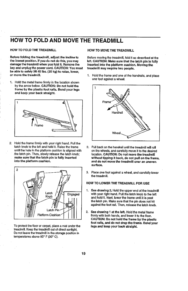 HOW TO FOLD AND MOVE THE TREADMILL ................................................... I9