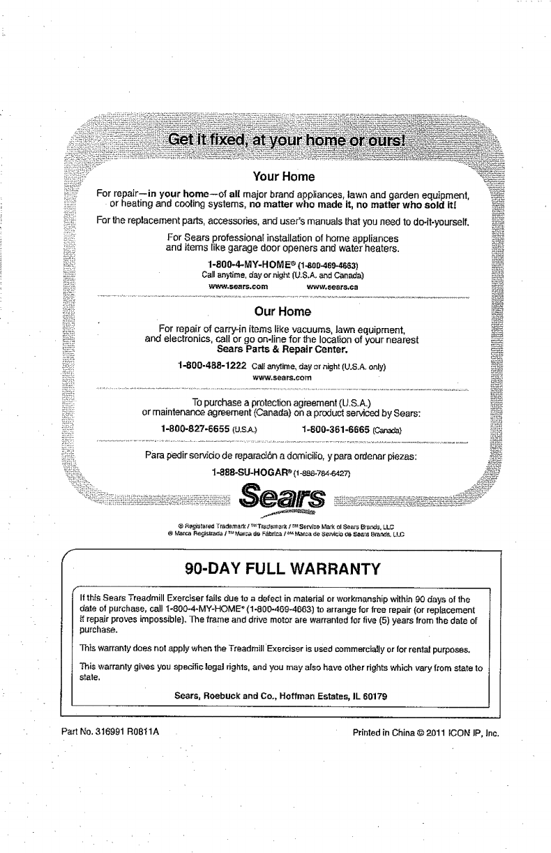 Part No. 316991 R0811A Printed in China © 2011 ICON IP. Inc.