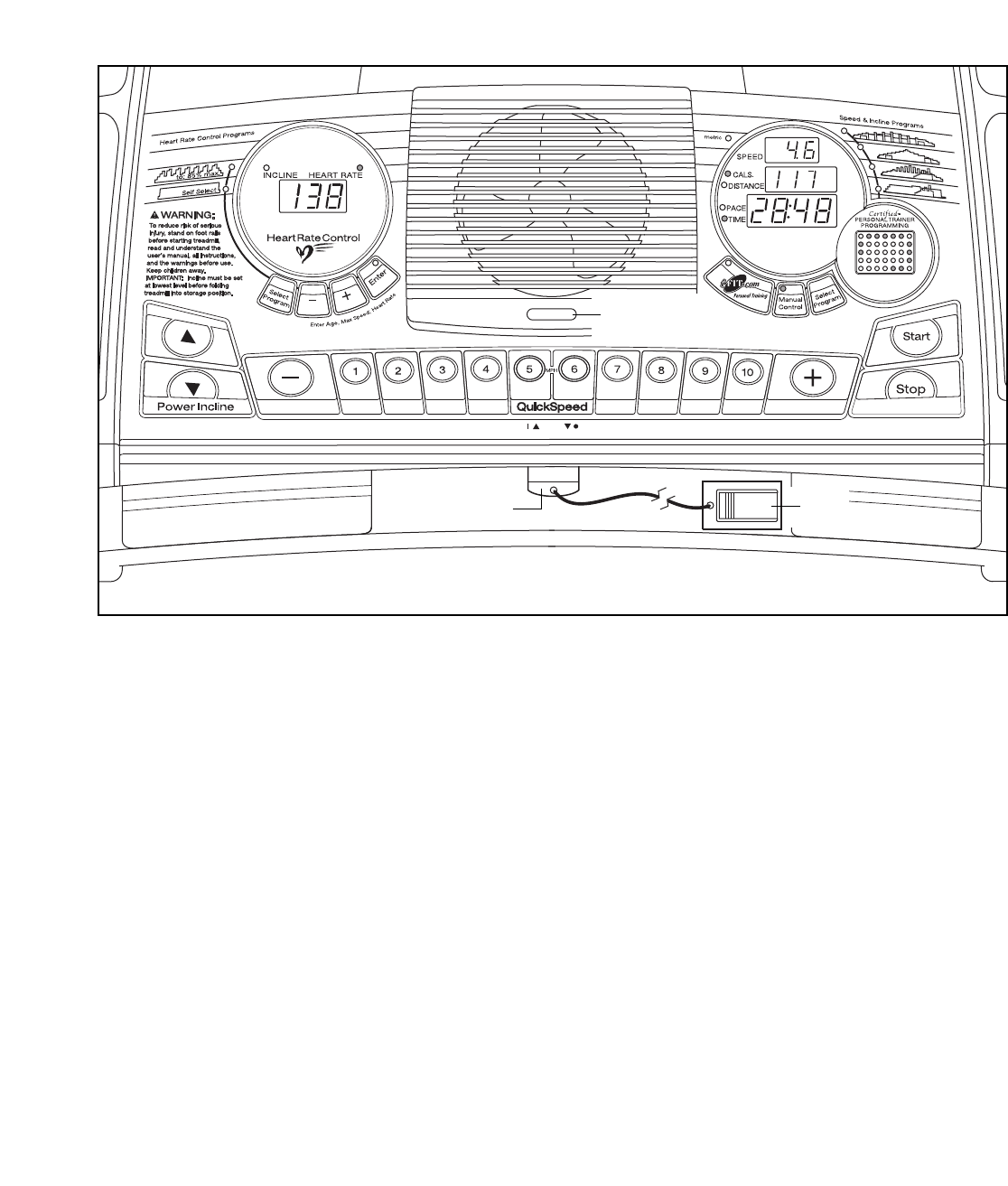 letic shoes. Never use the treadmill with bare