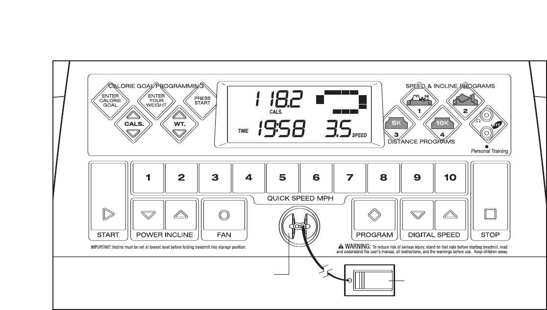 away from the treadmill at all times.