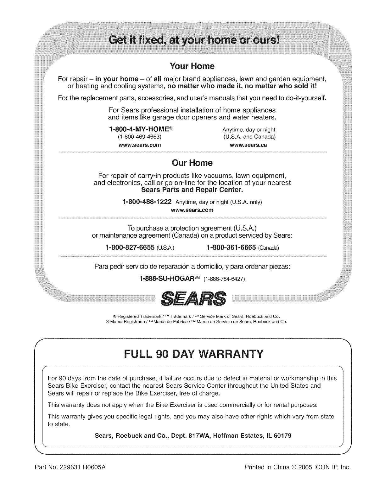 Sears Bike Exerciser, contact the nearest Sears Service Center throughout the United States and